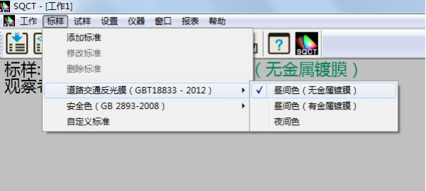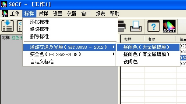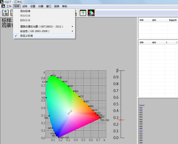 針對國內(nèi)交通路標(biāo)使用較多的標(biāo)準(zhǔn)GB/T?18833,SQCT軟件將該標(biāo)準(zhǔn)中的標(biāo)準(zhǔn)色域納入其中,客戶只需根據(jù)自己需要進(jìn)行選擇即可。